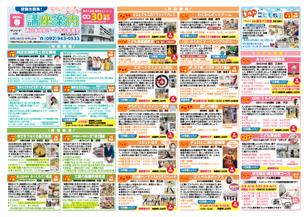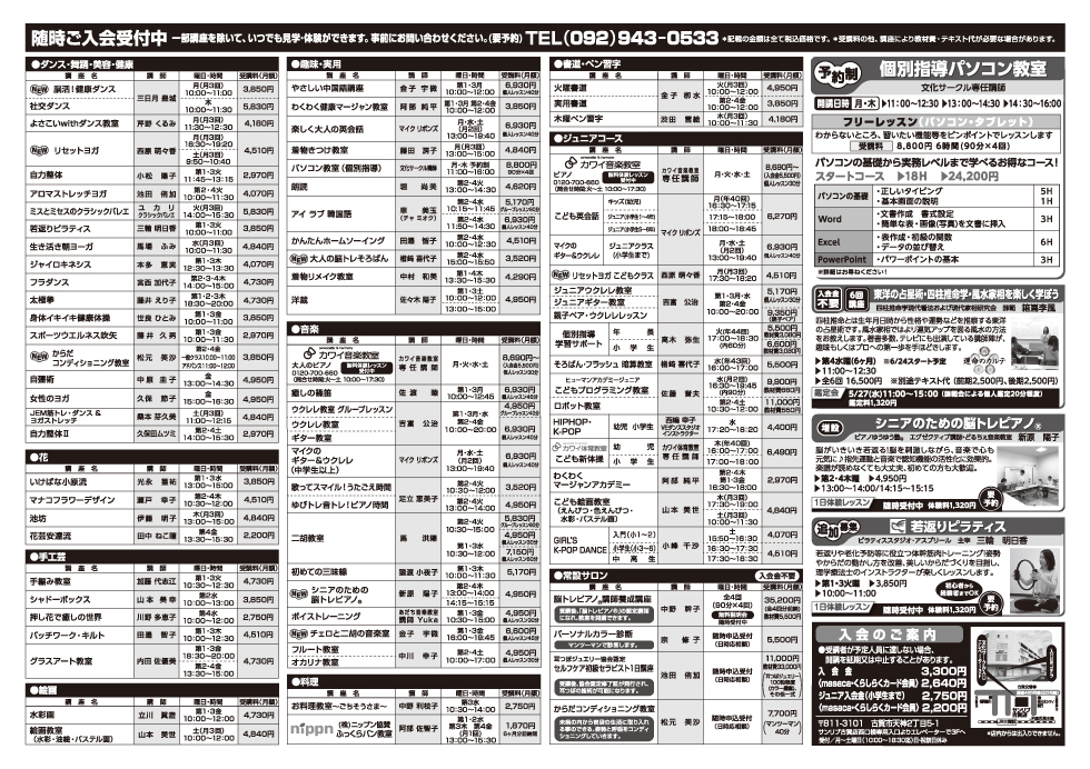 お問い合わせ先:古賀店 文化サークル TEL 092-943-0533