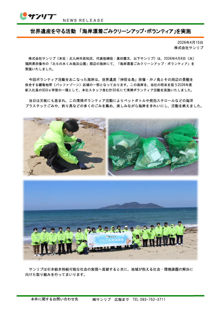世界遺産を守る活動「海岸漂着ごみクリーンアップ・ボランティア」を実施