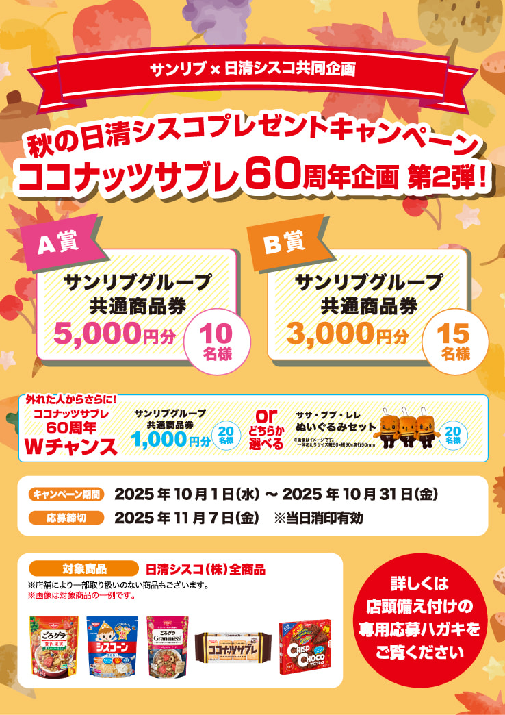 キャンペーン期間 | 2025年10月1日(水)〜2025年10月31日(金) 応募締切日:2025年11月7日(金) ※当日消印有効 |