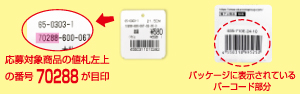 岡本商品に貼付している値札またはバーコードを専用応募ハガキまたは郵便ハガキにテープなどでしっかりと貼り、①郵便番号②住所③氏名④お買い上げ店舗名を明記の上、郵送にてご応募ください。